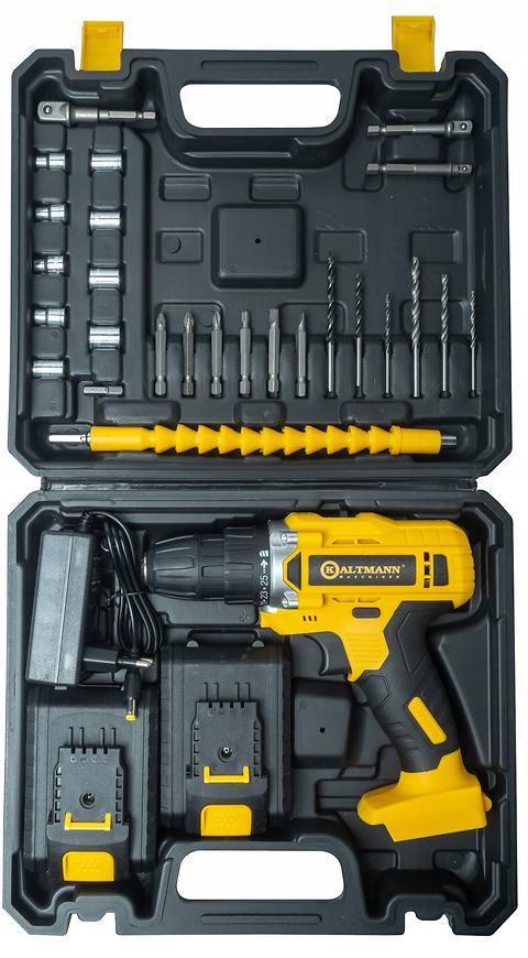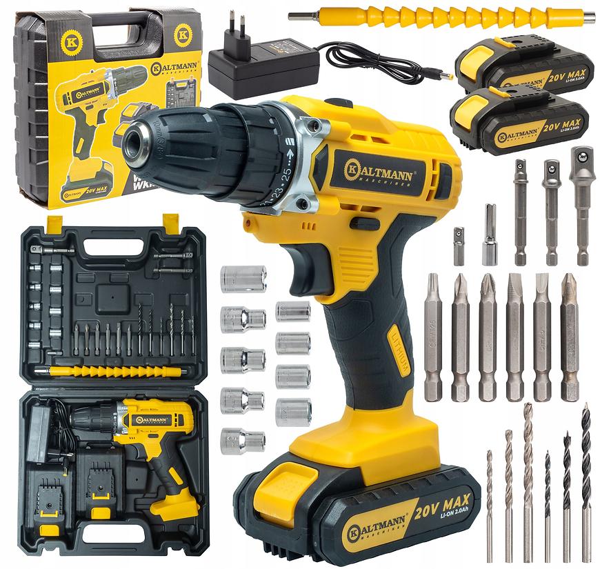 Kaltmann Wiertarko-Wkrętarka 20V z dwoma akumulatorami 2Ah i zestawem akcesoriów to praktyczny i wydajny zestaw do szerokiego zakresu prac domowych, warsztatowych i montażowych. Dzięki napięciu 20V oraz dwóm pojemnym akumulatorom litowo-jonowym możesz pracować bez przerw i bez ograniczeń przewodowych. Urządzenie oferuje możliwość wiercenia i wkręcania w różne materiały, a ergonomiczna konstrukcja zapewnia komfort użytkowania. Dołączony zestaw akcesoriów zwiększa uniwersalność narzędzia i pozwala od razu przystąpić do pracy. Idealny wybór dla majsterkowiczów i użytkowników szukających kompletu „gotowego do działania”.