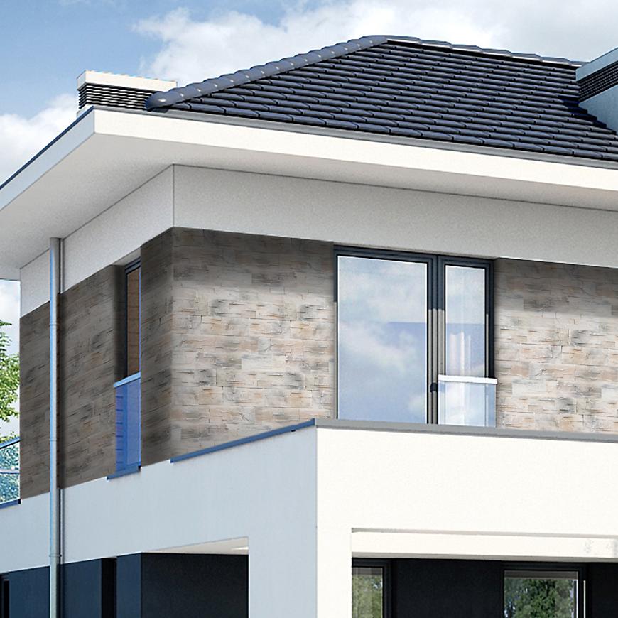Produkt cechuje się mrozoodpornością, co czyni go idealnym wyborem także na elewacje, ogrodzenia, tarasy czy ściany balkonowe. Strukturalna powierzchnia nie tylko podkreśla naturalny wygląd kamienia, ale również dodaje przestrzeni głębi i charakteru.
