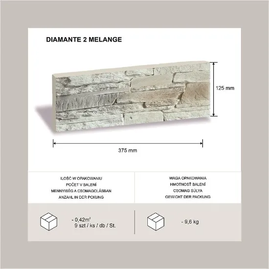 ​Kamień Betonowy Diamante 2 Melange to dekoracyjna płytka betonowa, która doskonale imituje naturalny kamień, nadając wnętrzom elegancki i nowoczesny charakter. Jej beżowy odcień harmonijnie komponuje się z różnymi stylami aranżacji, od klasycznych po industrialne.​