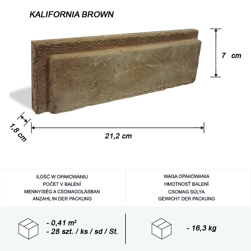 ​Kamień Betonowy Kalifornia Brown to dekoracyjna płytka elewacyjna, która doskonale imituje wygląd tradycyjnej cegły. Jego ciepły, brązowy kolor oraz struktura nadają przestrzeni przytulny i naturalny charakter.