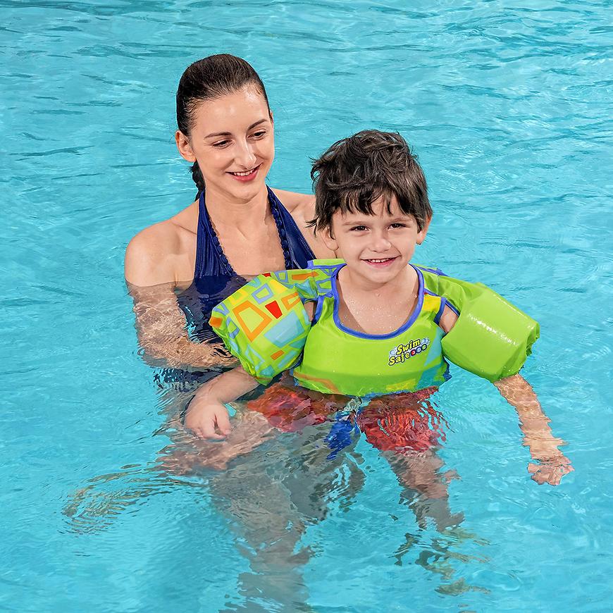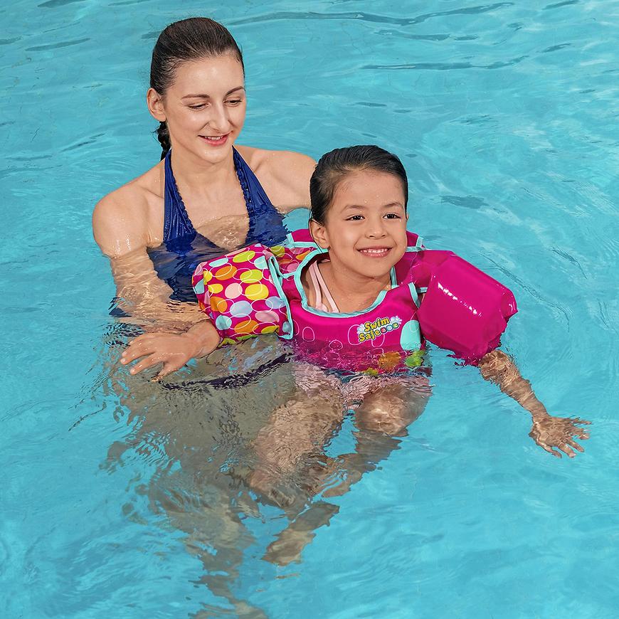 Kamizelka do pływania Aquastar 32174 to idealna opcja dla dzieci ważących od 19 do 30 kg, które uczą się samodzielnego pływania. Należy do programu Bestway® Swim Safe ABC – Krok B, co oznacza, że wspiera maluchy w nauce podstaw poruszania się w wodzie. To niezawodna pomoc w budowaniu pewności siebie podczas pierwszych wodnych przygód.