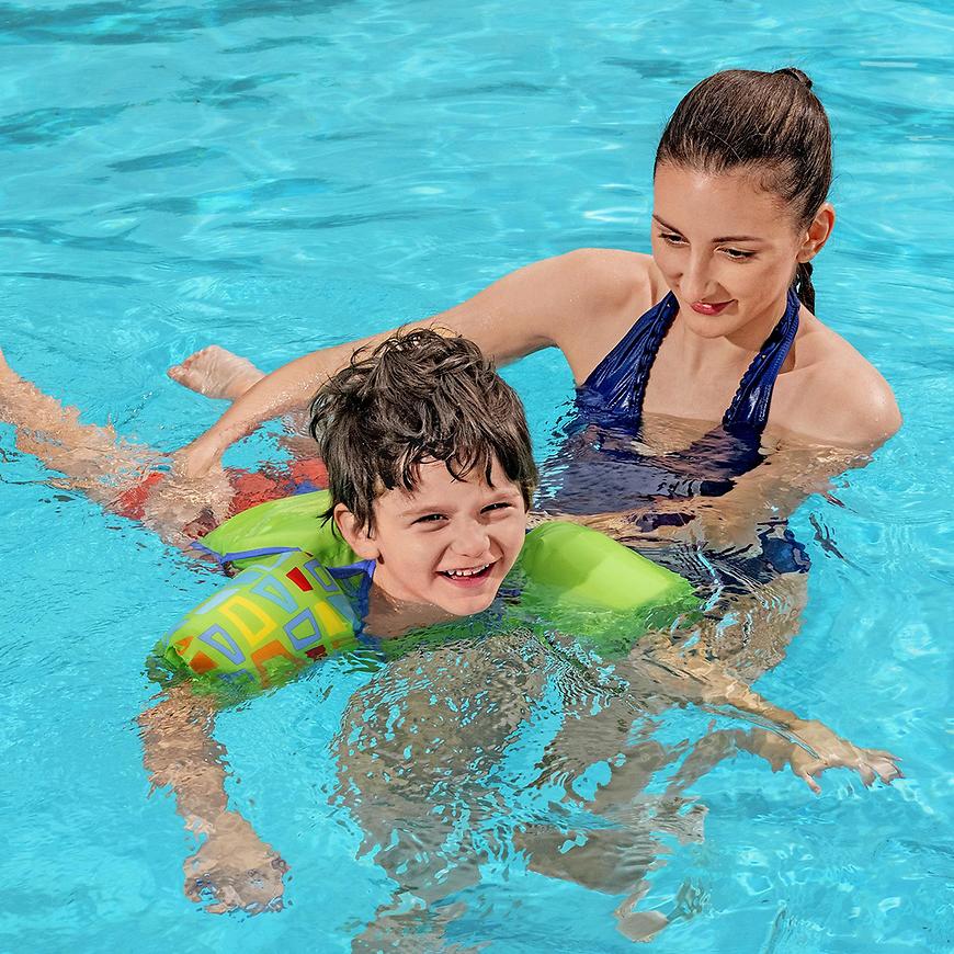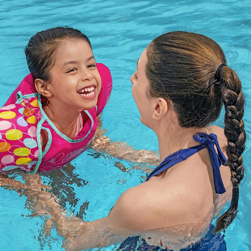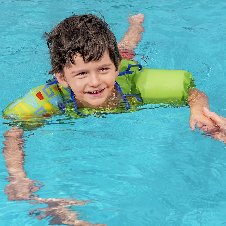 - Wbudowane wkładki piankowe gwarantują sprawdzoną pływalność, pomagając dziecku utrzymać się na powierzchni wody.