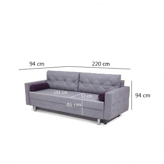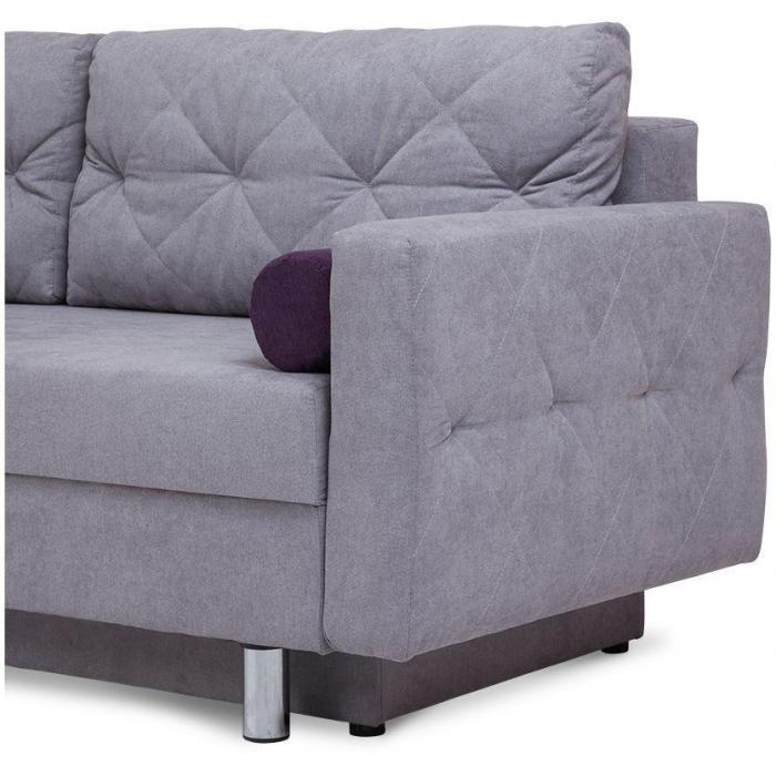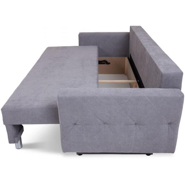 Sposób rozkładania DL to szybki i prosty sposób na rozłożenie sofy - wystarczy podnieść siedzisko do góry i przesunąć do przodu, a w miejsce siedziska kładziemy oparcie. Po rozłożeniu powierzchnia spania wynosi 149x191cm. Kanapa posiada pojemnik na pościel, w którym zmieścimy kołdrę i poduszkę zapewniając porządek w pomieszczeniu.