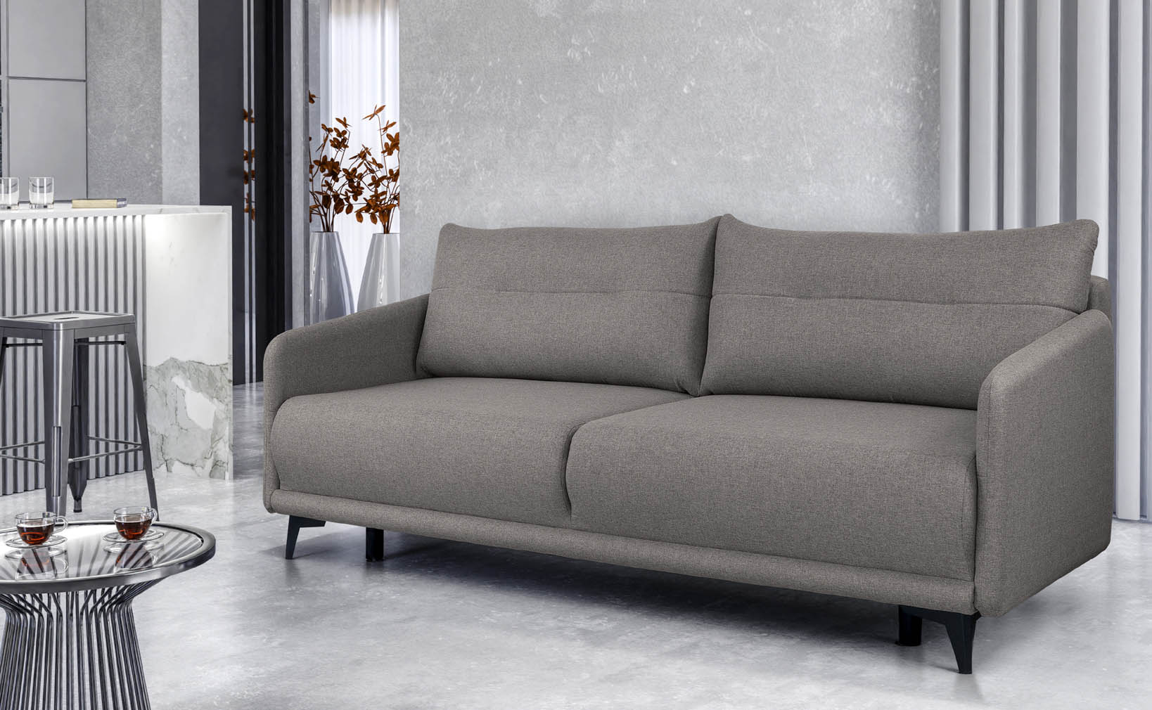 Nogi kanapy wykonane z wysokiej jakości plastiku gwarantują stabilność i łatwość utrzymania czystości. Kanapa Aniela charakteryzuje się również funkcją rozkładania, oferując powierzchnię spania o wymiarach 140x193 cm. Dodatkowo, praktyczny pojemnik na pościel ułatwia przechowywanie dodatkowych elementów, co sprawia, że kanapa staje się nie tylko stylowym meblem do siedzenia, ale również praktycznym dodatkiem do każdego wnętrza.