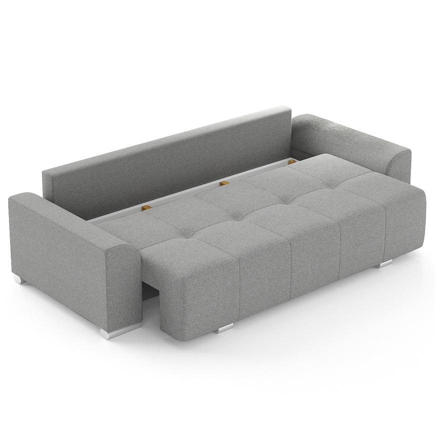 Tapicerowana wysokiej jakości tkaniną, kanapa prezentuje się nowocześnie i stylowo, a chromowane nogi dodają jej lekkości i elegancji. Wyposażona w automat DL, umożliwia szybkie i bezproblemowe rozkładanie – bez wysiłku i z zachowaniem estetyki.