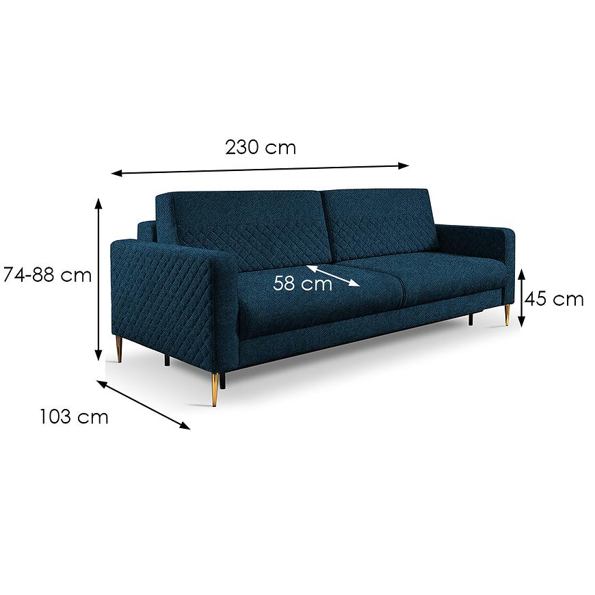 Kanapa Blanka w eleganckim odcieniu granatowym to mebel, który nie tylko przyciąga uwagę swoim wyglądem, ale także łączy w sobie komfort i funkcjonalność, czyniąc go doskonałym centrum wypoczynku w Twoim salonie.