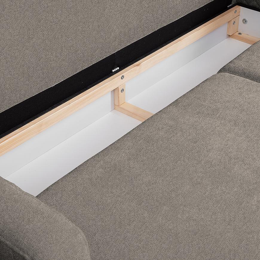 Warto również zwrócić uwagę na praktyczny pojemnik na pościel, który ułatwia przechowywanie dodatkowej pościeli czy poduszek, pomagając utrzymać porządek w salonie.