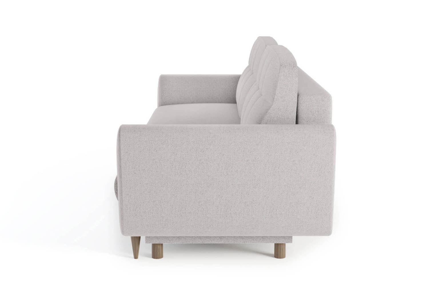 Solidny stelaż wykonany z drewna sosnowego i bukowego to gwarancja trwałości i stabilności konstrukcji. Nogi kanapy, również wykonane z drewna, dodają meblowi elegancji i jednocześnie podkreślają jego solidność.