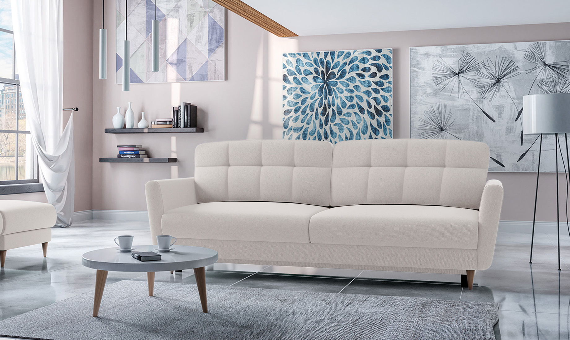 Dodatkowym atutem kanapy Bogna jest jej funkcja spania o wymiarach 140x200, co sprawia, że kanapa jest idealnym miejscem do noclegu dla gości. Pojemnik na pościel ułatwia przechowywanie pościeli i innych potrzebnych akcesoriów.