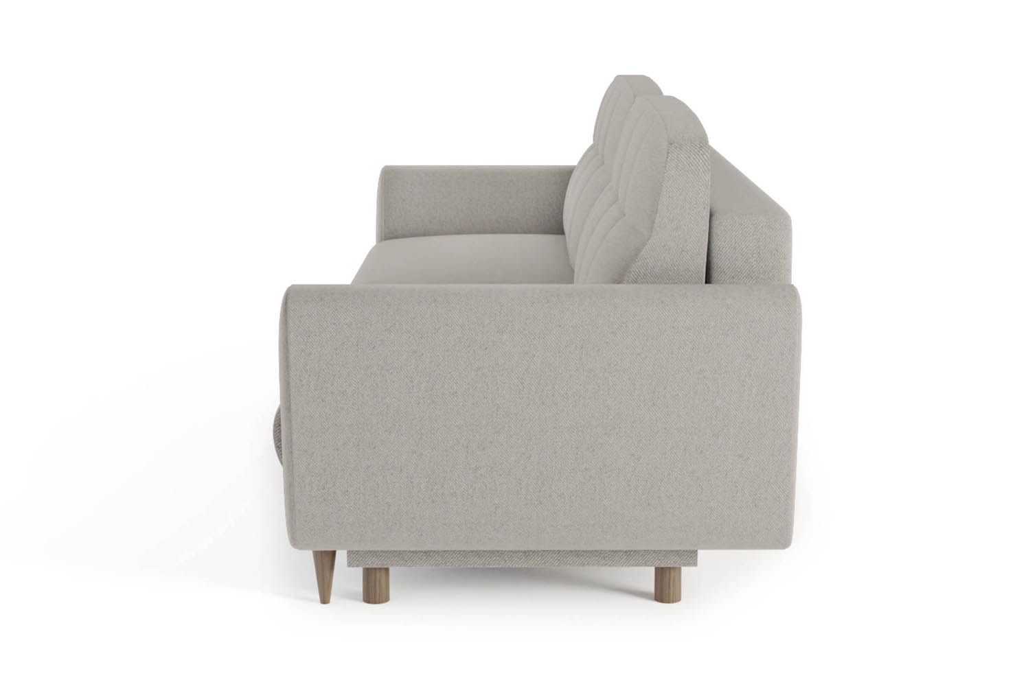 Solidny stelaż wykonany z drewna sosnowego i bukowego to gwarancja trwałości i stabilności konstrukcji. Nogi kanapy, również wykonane z drewna, dodają meblowi elegancji i jednocześnie podkreślają jego solidność.