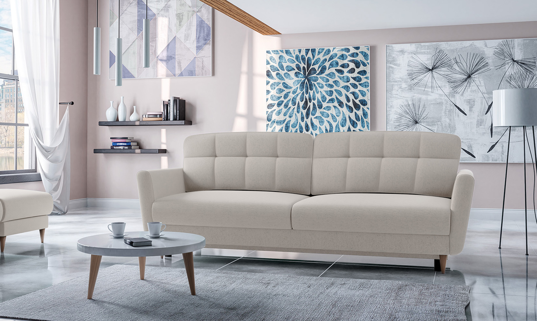 Dodatkowym atutem kanapy Bogna jest jej funkcja spania o wymiarach 140x200, co sprawia, że kanapa jest idealnym miejscem do noclegu dla gości. Pojemnik na pościel ułatwia przechowywanie pościeli i innych potrzebnych akcesoriów.