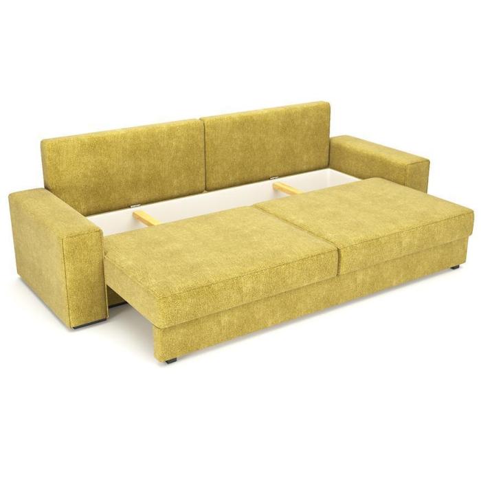 Rozkładana kanapa Elsa posiada zalety funkcji spania. Funkcja spania o wymiarach 152x196cm zapewni dodatkową przestrzeń w salonie bądź w innym pomieszczeniu w domu. Dodatkowe miejsce zapewnia pojemnik na pościel, który pozwala na schowanie pościeli, koca, poduszek lub innych przedmiotów.