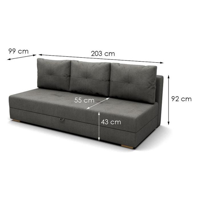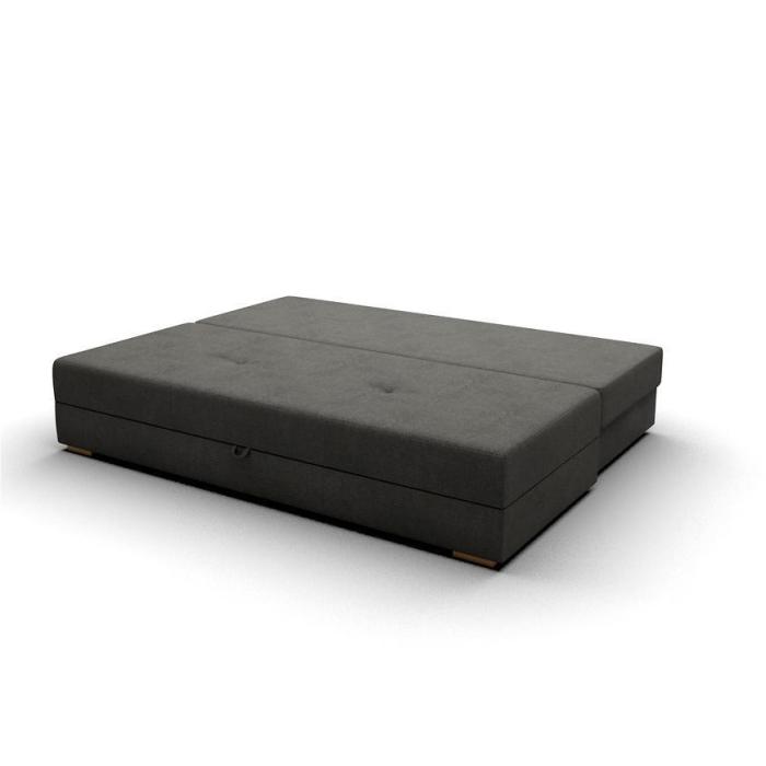 Rozkładana kanapa Dafne posiada funkcję spania. Funkcja spania o wymiarach 140x200 cm zapewni dodatkową przestrzeń w salonie bądź w innym pomieszczeniu w domu. Wypełnienie wersalki to sprężyny faliste oraz bonell, co zapewni pełen komfort relaksu i wypoczynku. Dodatkowe miejsce zapewnia pojemnik na pościel, który pozwala na schowanie koca, poduszek lub innych produktów.