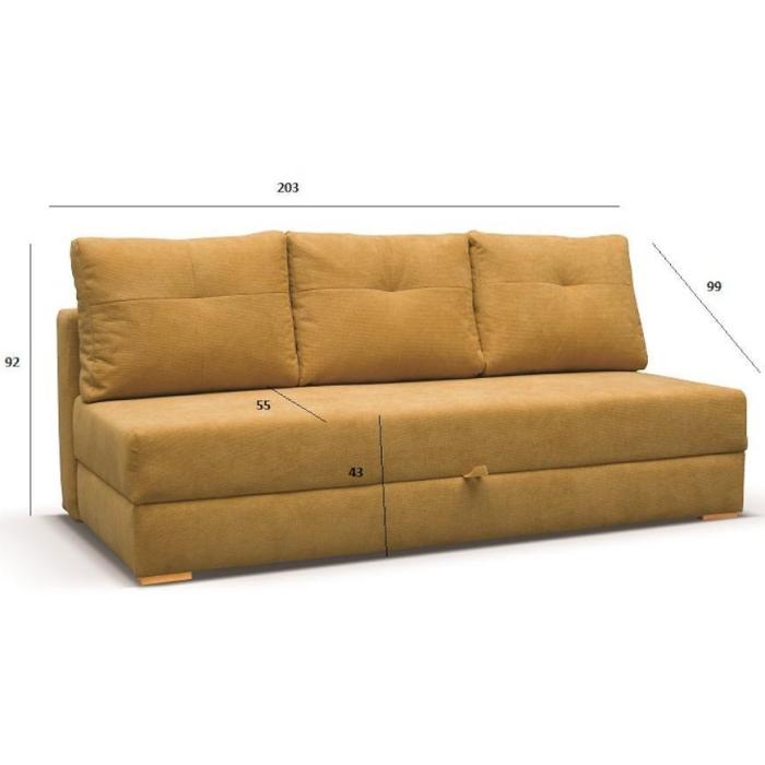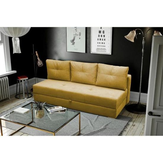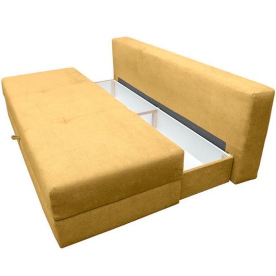 Rozkładana kanapa Dafne posiada funkcję spania o wymiarach 140x200 cm zapewni dodatkową przestrzeń w salonie bądź w innym pomieszczeniu w domu. Wypełnienie wersalki to sprężyny faliste oraz bonell, co zapewni pełen komfort relaksu i wypoczynku. Dodatkowe miejsce zapewnia pojemnik na pościel, który pozwala na schowanie koca, poduszek lub innych produktów.