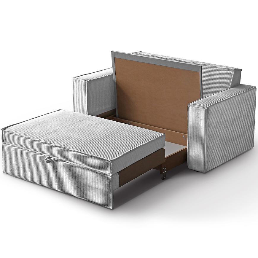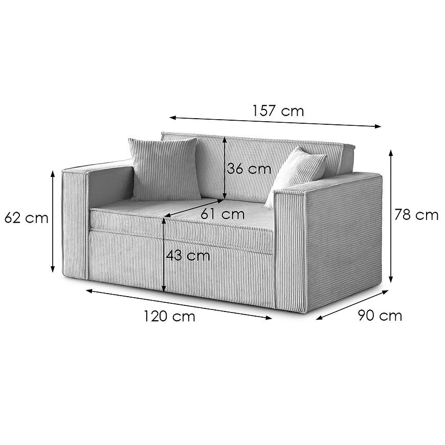 Kanapa Dave 120 Poso 55 to nowoczesna szara kanapa z funkcją spania, oferująca powierzchnię do leżenia o wymiarach 188x122 cm. Siedzisko wykonane jest z pianki, zapewniając wygodę podczas odpoczynku, a pod nim znajduje się praktyczny schowek na pościel. Kanapa ma wymiary 157 cm szerokości, 90 cm głębokości i 78 cm wysokości, przy wysokości siedziska 43 cm i głębokości siedziska 61 cm. Rozkładanie odbywa się przy użyciu mechanizmu wózkowego, a całość wykończona jest ozdobną lamówką. W komplecie znajduje się poduszka dekoracyjna, a produkt nie wymaga montażu.