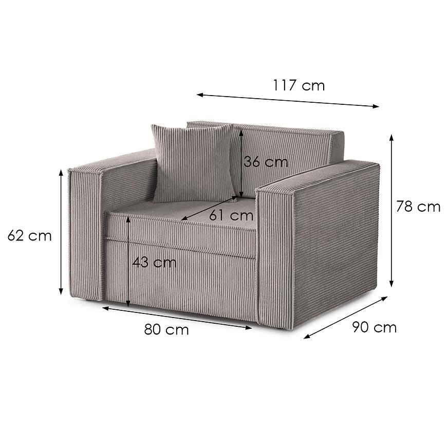 Siedzisko wypełnione pianką gwarantuje komfort codziennego wypoczynku. Przy kompaktowych wymiarach (117x90x78 cm) kanapa Dave 80 Poso 02 stanowi idealne rozwiązanie do kawalerki, pokoju młodzieżowego lub jako dodatkowe miejsce do spania.