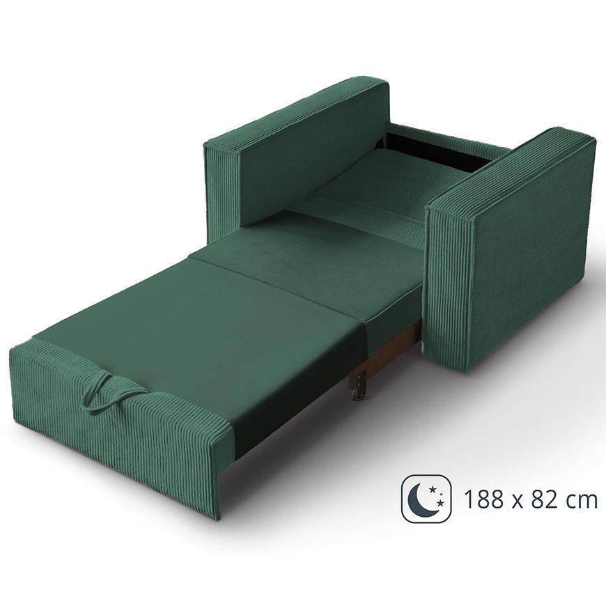 Kanapa posiada funkcję spania – dzięki systemowi wózek wspieranemu przez automat do rozkładania rozkładanie i składanie jest szybkie i wygodne. Powierzchnia spania wynosi 188x82 cm, co pozwala na komfortowy wypoczynek. Dodatkowym atutem jest schowek na pościel, który zwiększa praktyczność mebla.