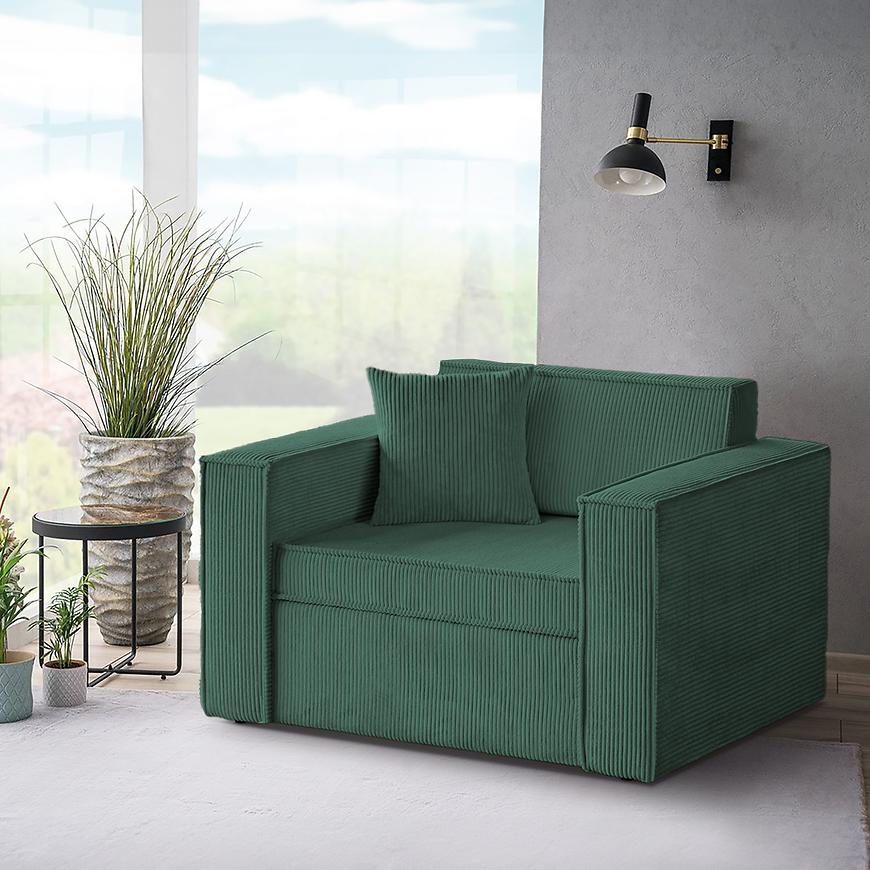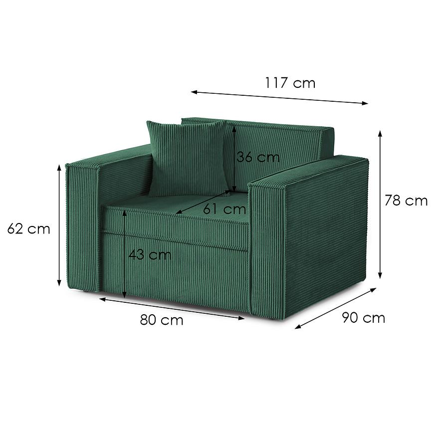 Kanapa Dave 80 Poso 14 to kompaktowy i funkcjonalny mebel w nowoczesnym stylu. Jej zielona tkanina tapicerska nadaje wnętrzu świeżości i charakteru, a lamówka ozdobna oraz dekoracyjna poduszka subtelnie podkreślają elegancki wygląd.