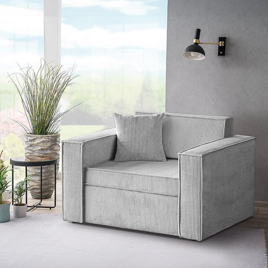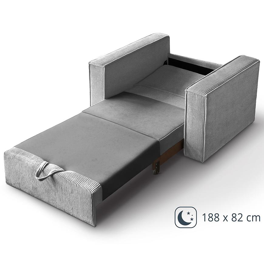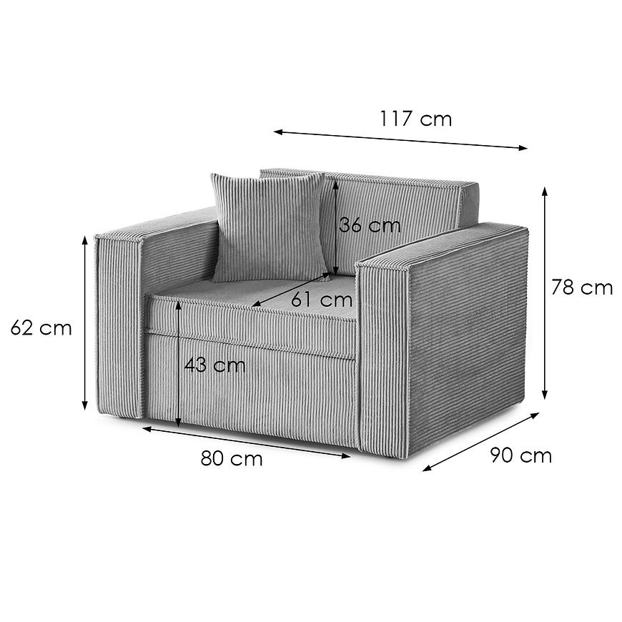 Kanapa Dave 80 Poso 55 to nowoczesny i kompaktowy mebel w szarym kolorze, który sprawdzi się zarówno jako wygodne miejsce do siedzenia, jak i łóżko dzięki funkcji spania z mechanizmem wózkowym i automatem do rozkładania. Pod siedziskiem znajduje się praktyczny schowek na pościel, a całość wypełniona jest pianką, co zapewnia komfort użytkowania. Kanapa posiada ozdobną lamówkę i poduszkę dekoracyjną, nie wymaga montażu i zachowuje minimalistyczny wygląd dzięki niewidocznym nóżkom. Jej wymiary to 117 cm szerokości, 90 cm głębokości i 78 cm wysokości, przy wysokości siedziska 43 cm i głębokości siedziska 61 cm.