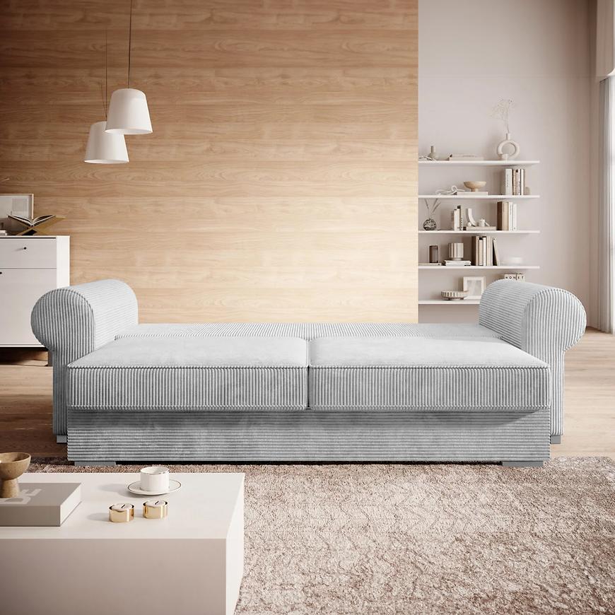 Dodatkową praktyczną funkcją jest pojemnik na pościel, który pozwala na łatwe przechowywanie kołder, poduszek czy innych akcesoriów. Schowek jest pojemny i dyskretnie umieszczony pod siedziskiem. W zestawie znajdują się również poduszki, które podkreślają wygodę oraz elegancki wygląd kanapy. Kanapa Deluxe Poso to świetny wybór dla osób ceniących sobie funkcjonalność, wygodę i elegancki design.
