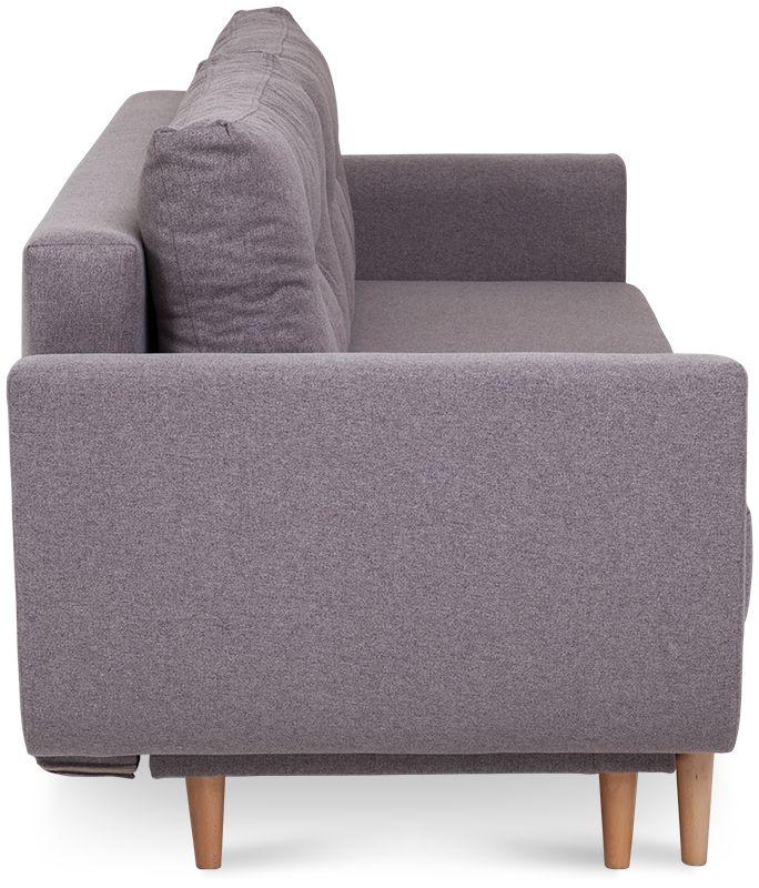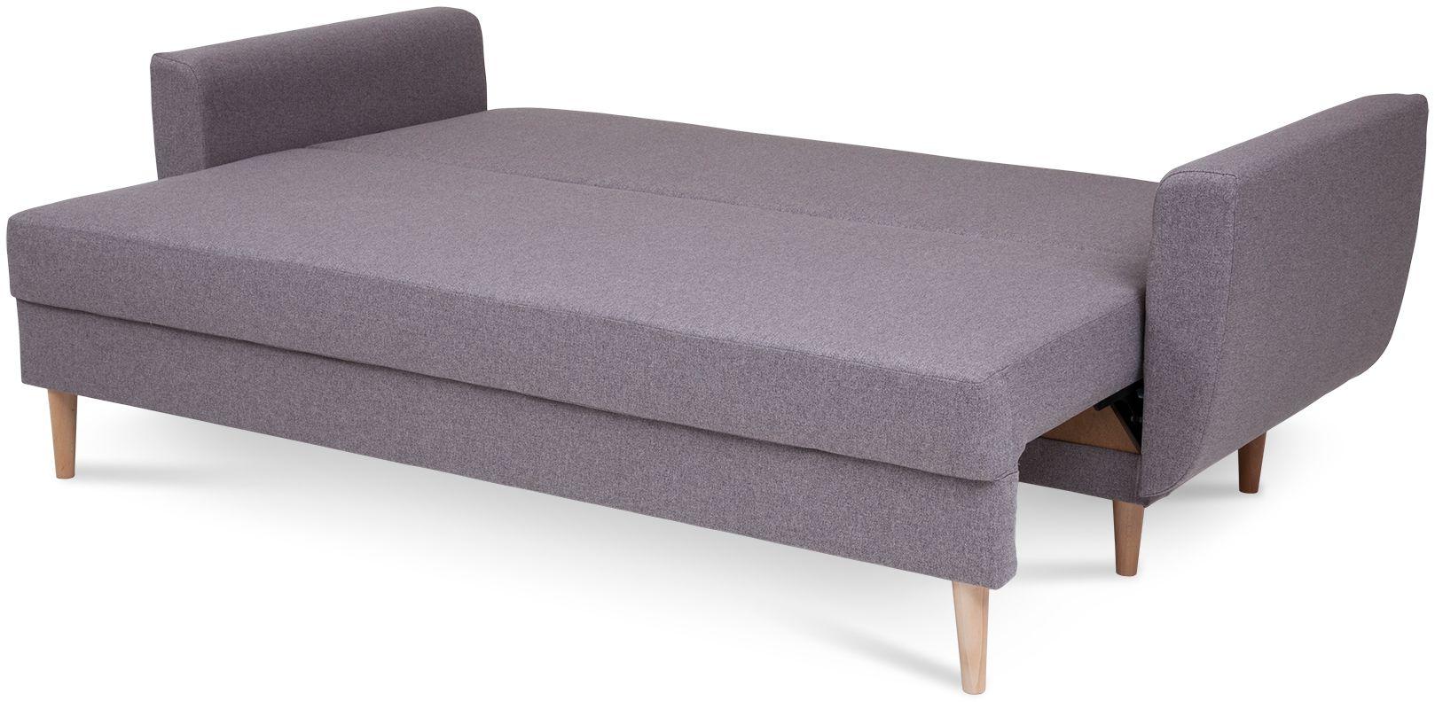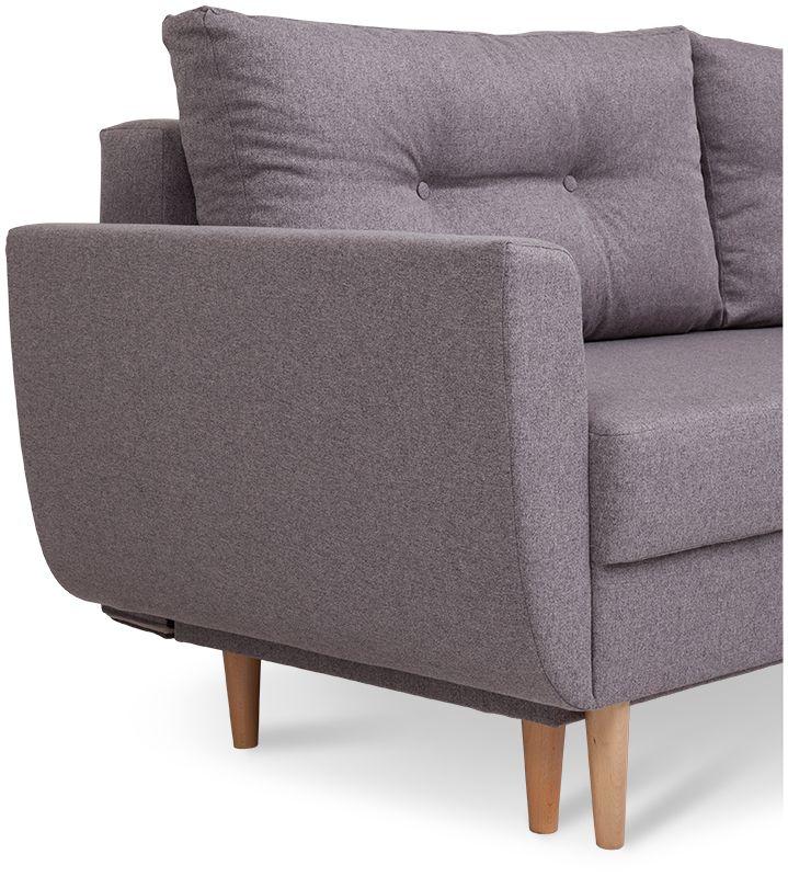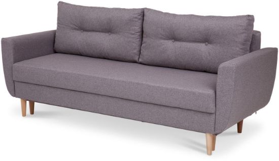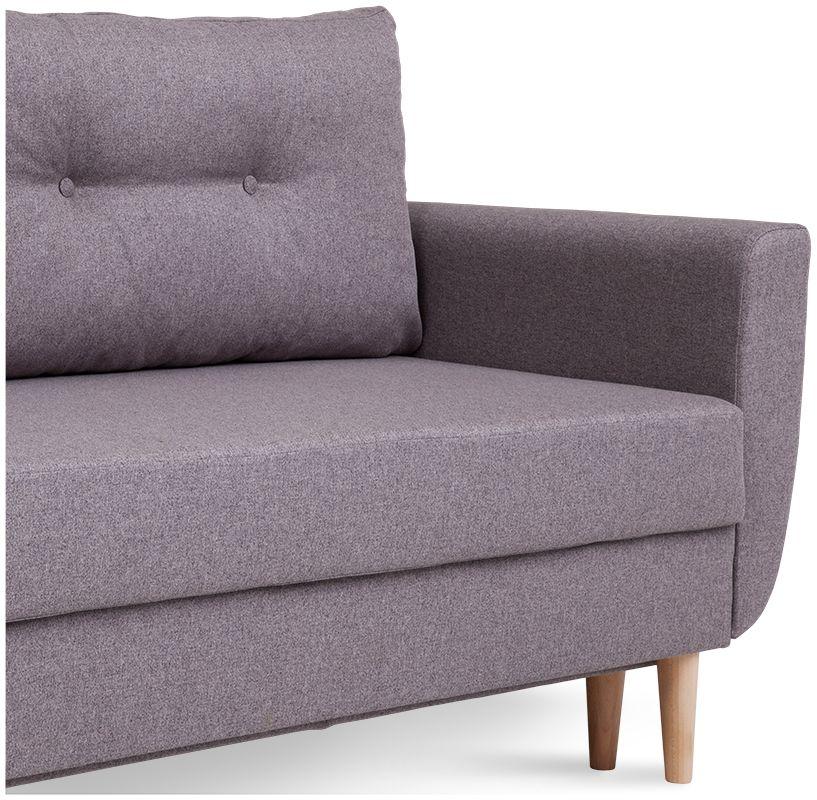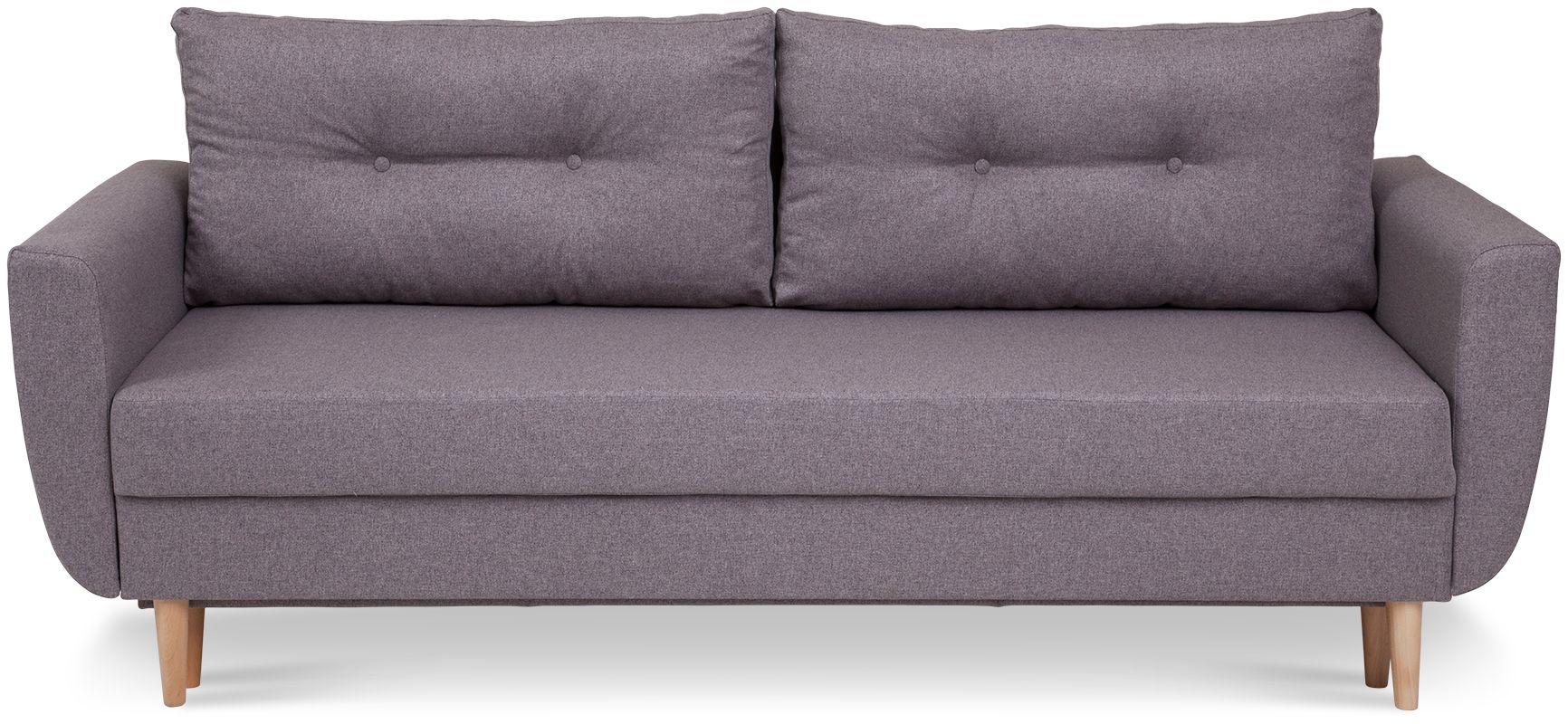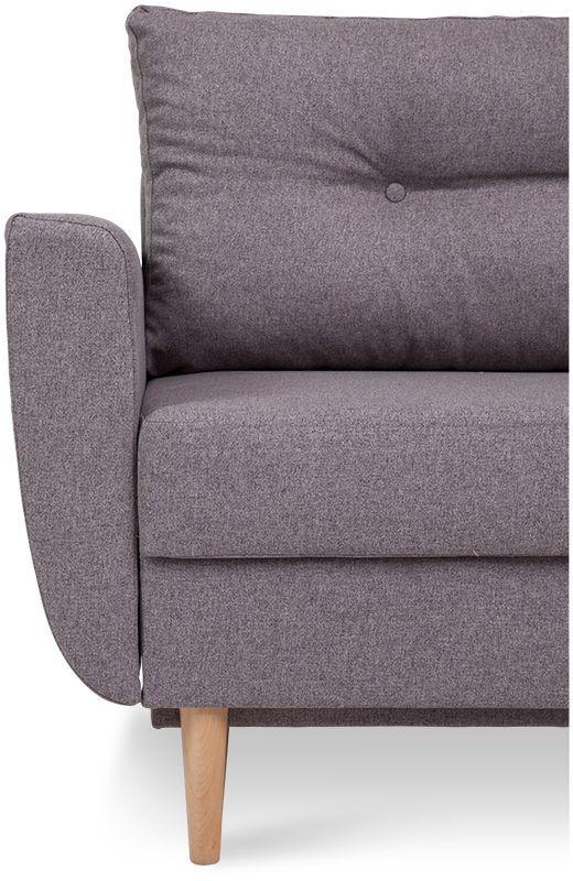 Kanapa Diora to mebel, obok którego nie można przejść obojętnie – już na pierwszy rzut oka zachwyca przepięknym designem, wzorowanym na najsłynniejszych kanapach w stylu retro, a także eleganckim i ponadczasowym beżowym kolorem tapicerki. Całość doskonale uzupełniają wysokie drewniane nóżki oraz dwie poduszki oparciowe z ozdobnymi guziczkami (w naszej ofercie znajduje się także fotel i pufa, które można kupić jako zestaw). Jeśli chodzi o kwestie praktyczne, jest to kanapa z funkcją spania – automat wspomagający rozkładanie w kilka chwil zmienia ją w wygodne, dwuosobowe łóżko o wymiarach 147x191 cm. Wyposażona została w pojemną skrzynię na pościel. Kanapa Diora w siedzisku i oparciu posiada sprężyny bonellowe, które przesądzają o jej wygodzie, ale i wytrzymałości. Dzięki temu w doskonałym stanie służy przez wiele lat!