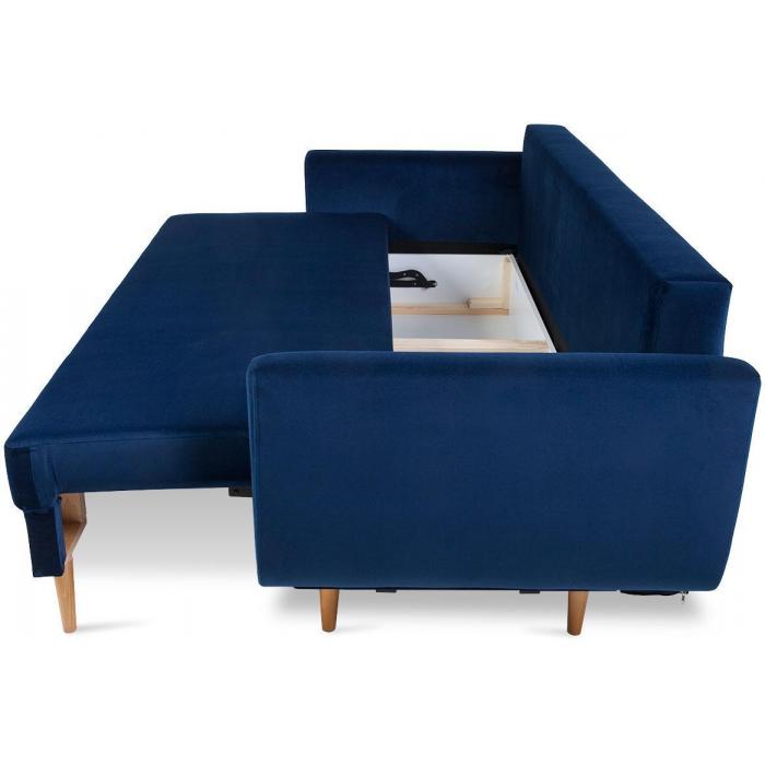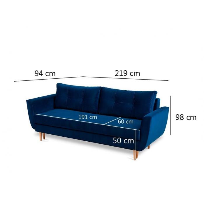 Rozkładana kanapa Diora posiada zalety funkcji spania. Funkcja spania o wymiarach 147x191cm zapewni dodatkową przestrzeń w salonie bądź w innym pomieszczeniu w domu. Wypełnienie wersalki to sprężyny bonell, co zapewni pełen komfort relaksu i wypoczynku. Dodatkowe miejsce zapewnia pojemnik na pościel, który pozwala na schowanie koca, poduszek lub innych produktów.