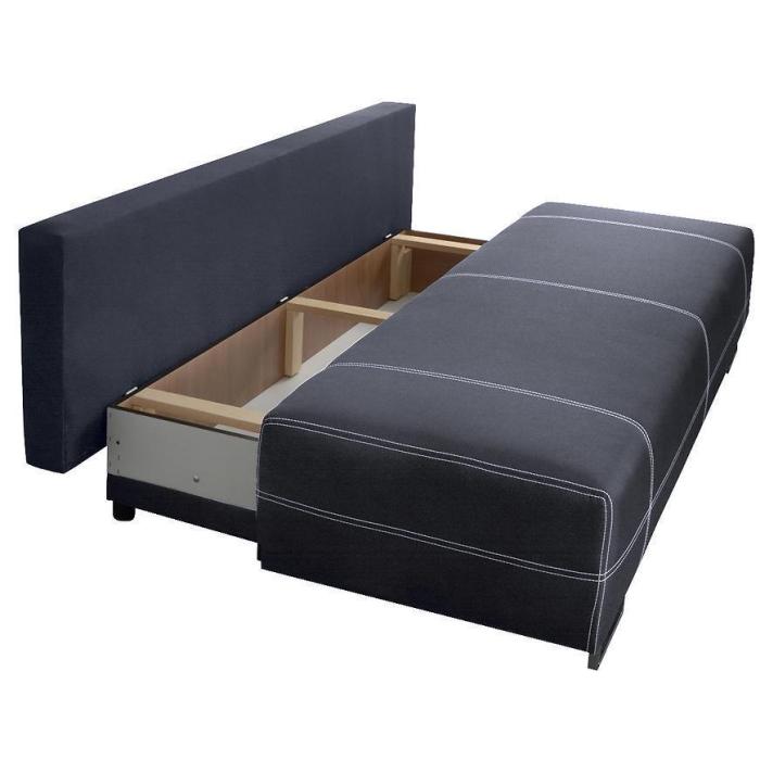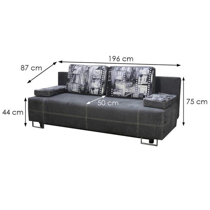 Rozkładana kanapa Eliza posiada zalety funkcji spania o wymiarach 130x196cm zapewni dodatkową przestrzeń w salonie bądź w innym pomieszczeniu w domu. Wypełnienie wersalki to sprężyny bonell, co zapewni pełen komfort relaksu i wypoczynku. Dodatkowe miejsce zapewnia pojemnik na pościel, który pozwala na schowanie pościeli, koca, poduszek lub innych przedmiotów.