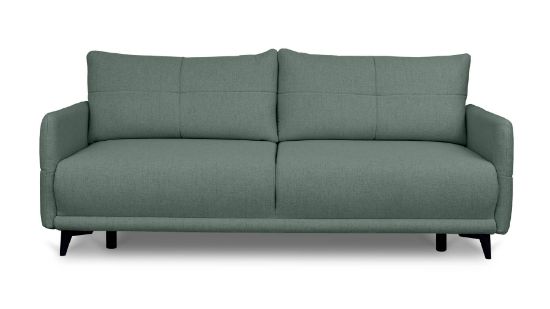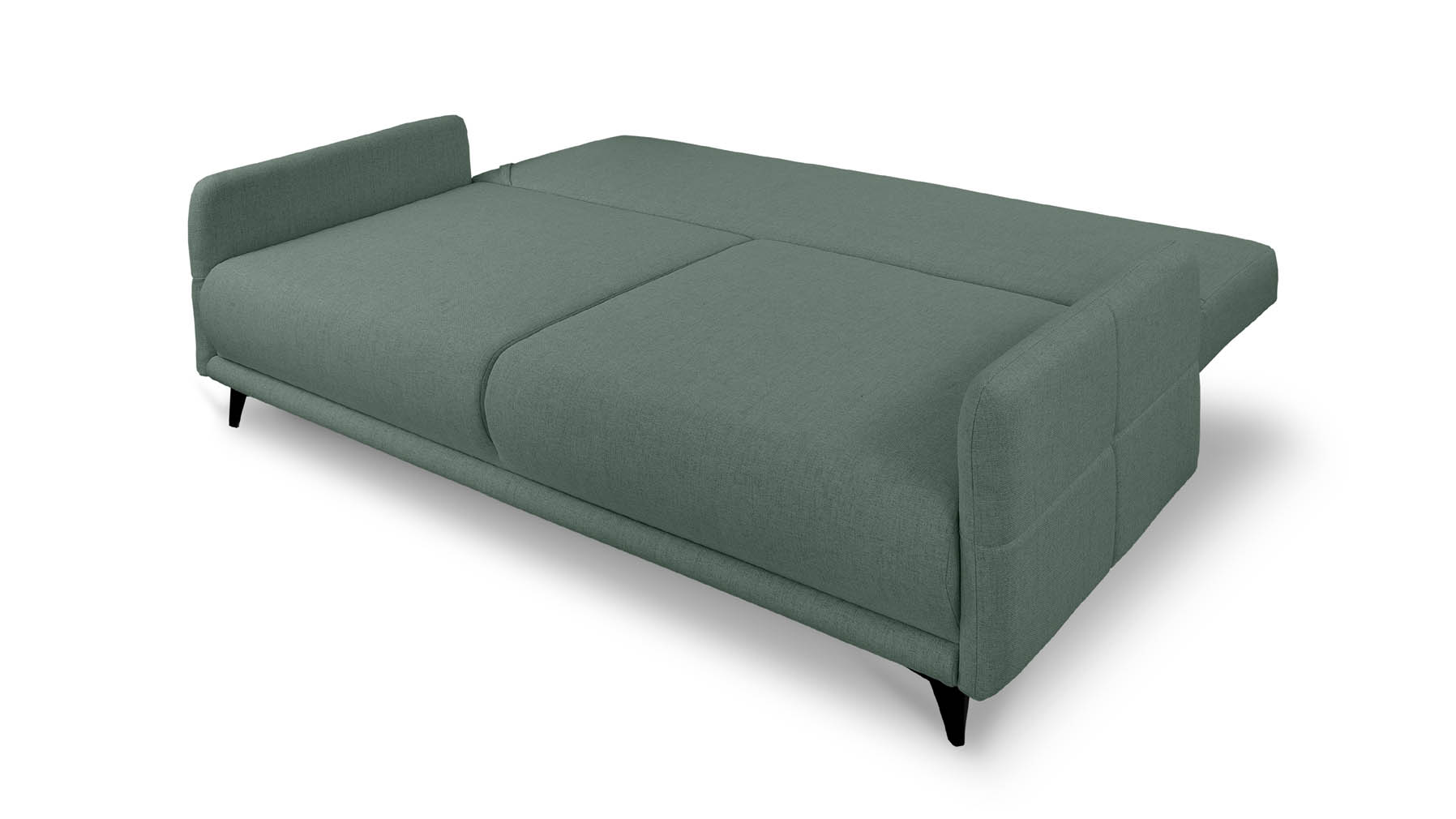 Dodatkowym atutem tej sofy jest możliwość rozkładania, oferując powierzchnię spania o wymiarach 140x193 cm. Praktyczny pojemnik na pościel ułatwia przechowywanie dodatkowych elementów, sprawiając, że kanapa staje się funkcjonalnym meblem do salonu czy pokoju gościnnego.