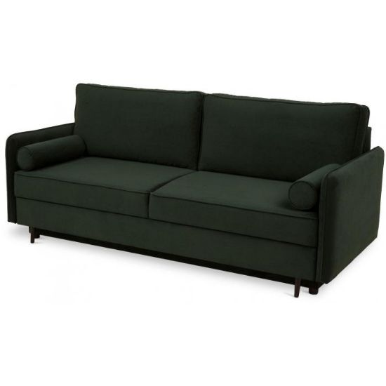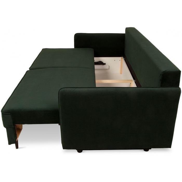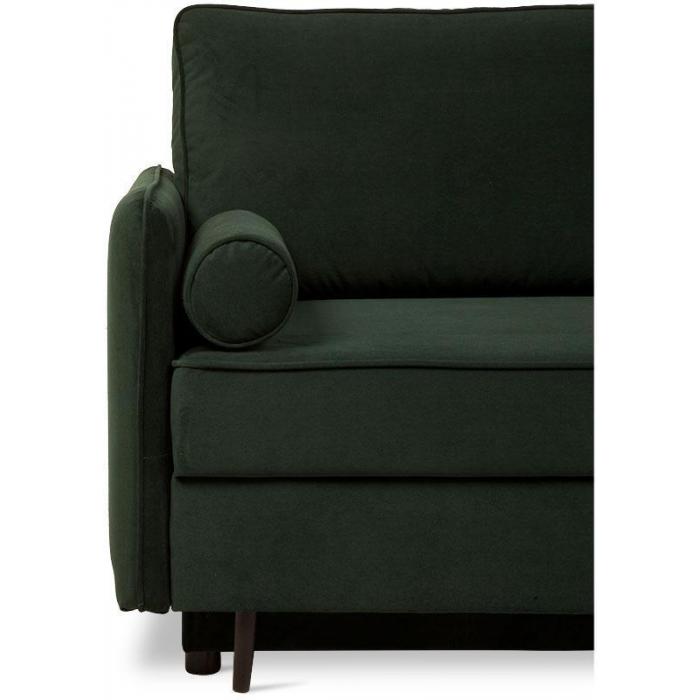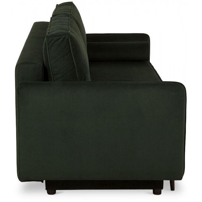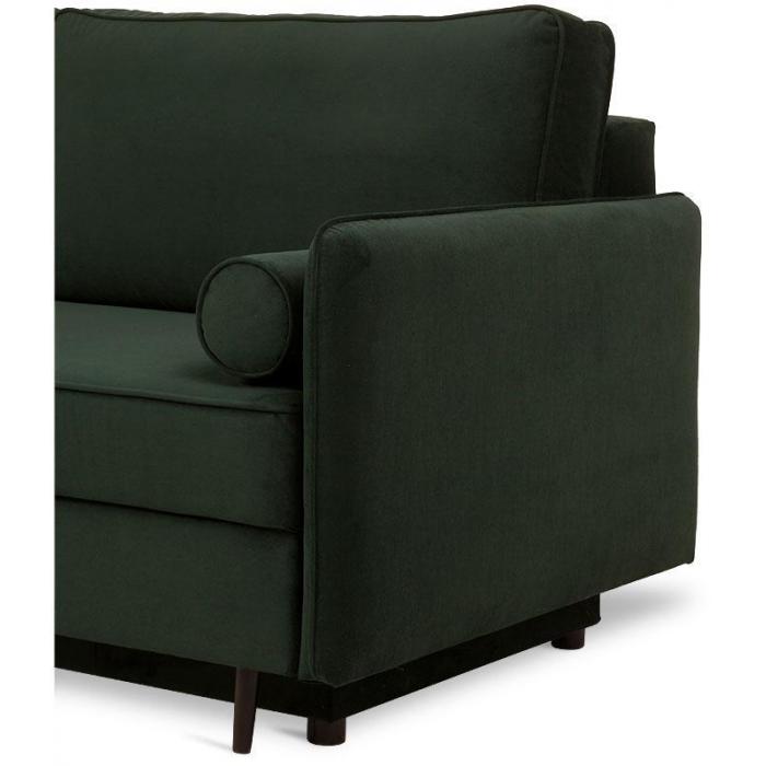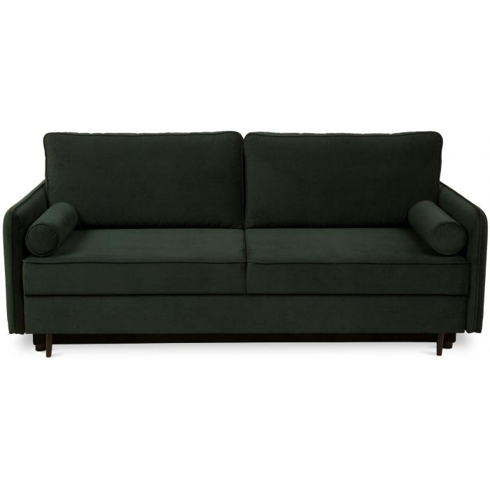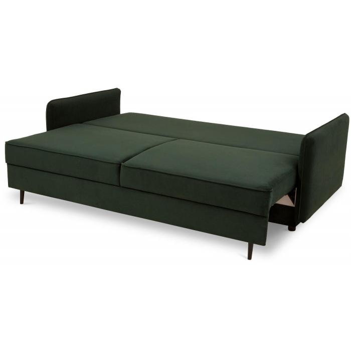 Rozkładana kanapa Evia posiada zalety funkcji spania. Funkcja spania o wymiarach 149x191cm zapewni dodatkową przestrzeń w salonie bądź w innym pomieszczeniu w domu. Wypełnienie wersalki to sprężyny faliste, bonell oraz pianka, co zapewni pełen komfort relaksu i wypoczynku. Dodatkowe miejsce zapewnia pojemnik na pościel, który pozwala na schowanie koca, poduszek lub innych produktów.