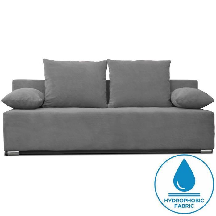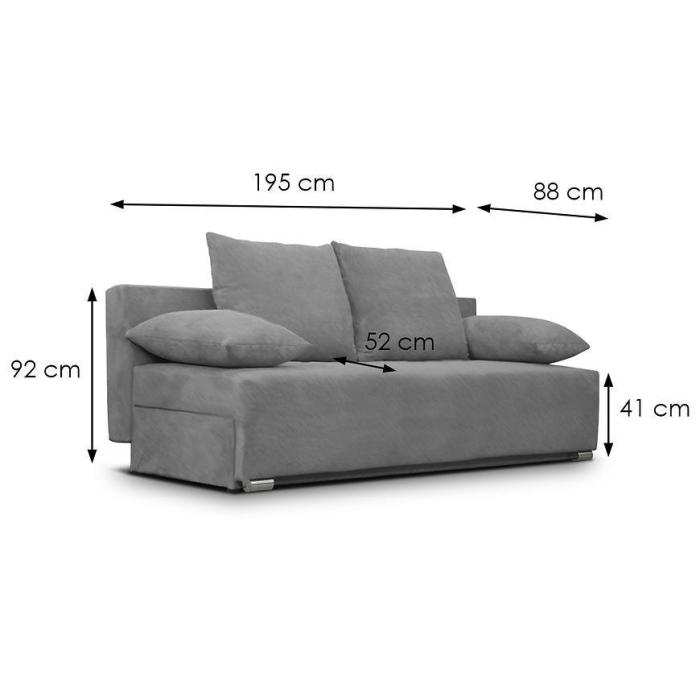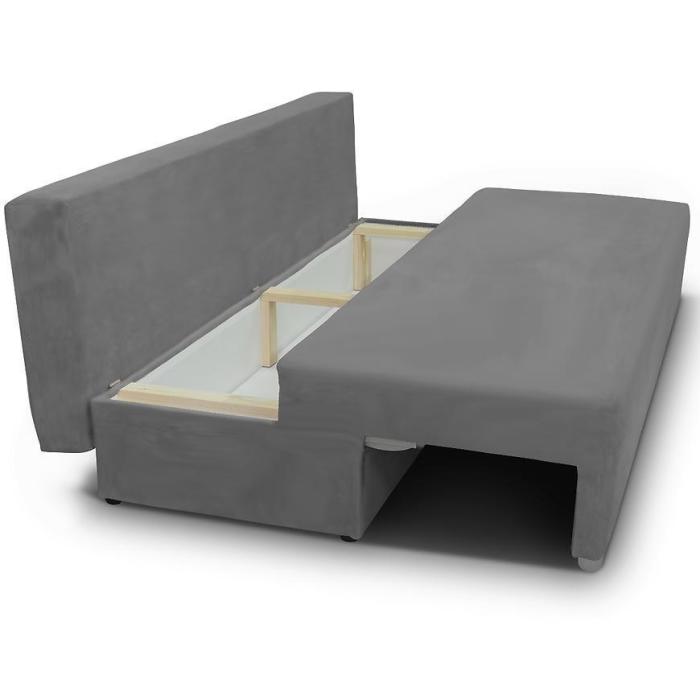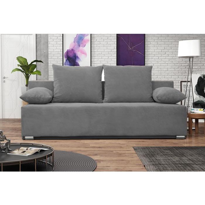 Kanapa Flora w kolorze szarym to praktyczna i funkcjonalna kanapa zaprojektowana w nowoczesnym stylu. Mebel ten posiada funkcję spania oraz praktyczny pojemnik na pościel. Po rozłożeniu powierzchnia spania wynosi 130x195 cm. System rozkładnia jest bardzo prosty- DL. Wypełnienie mebla stanowi sprężyna bonell, które zwiększają komfort podczas codziennego użytkowania. Świetnie sprawdzi się zarówno w salonie jak i pokoju dziennym, pełniąc funkcję zarówno miejsca spotkań jak i miejsca do spania.