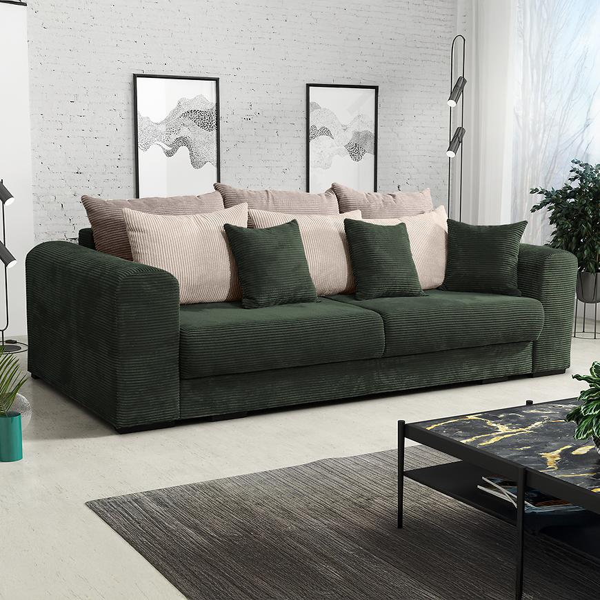 Kanapa Golden Zoom kolor zielony to idealne połączenie nowoczesnego designu i funkcjonalności, stworzone z myślą o komfortowym wypoczynku i praktycznym zagospodarowaniu przestrzeni. Dzięki funkcji spania oraz dużej powierzchni spania 170x201 cm, kanapa doskonale sprawdzi się zarówno w salonie, jak i w pokoju gościnnym.