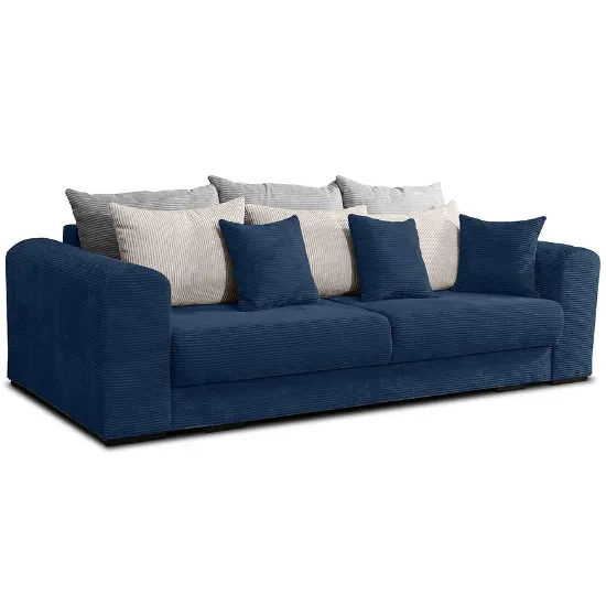 Kanapa Golden Zoom kolor niebieski to idealne połączenie nowoczesnego designu i funkcjonalności, stworzone z myślą o komfortowym wypoczynku i praktycznym zagospodarowaniu przestrzeni. Dzięki funkcji spania oraz dużej powierzchni spania 170x201 cm, kanapa doskonale sprawdzi się zarówno w salonie, jak i w pokoju gościnnym.