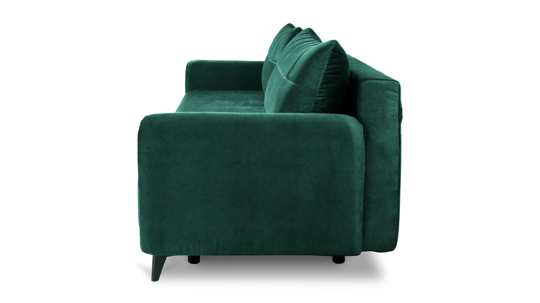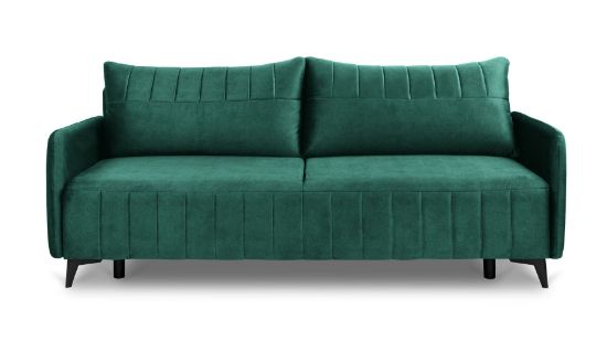 Nogi kanapy wykonane z wysokiej jakości plastiku gwarantują stabilność i łatwość utrzymania w czystości. Funkcja rozkładania, oferująca powierzchnię spania o wymiarach 140x193 cm, sprawia, że kanapa staje się praktycznym meblem do pomieszczeń gościnnych. Dodatkowo, praktyczny pojemnik na pościel ułatwia przechowywanie dodatkowych elementów, co czyni tę kanapę nie tylko stylowym, ale również funkcjonalnym dodatkiem do każdego wnętrza.