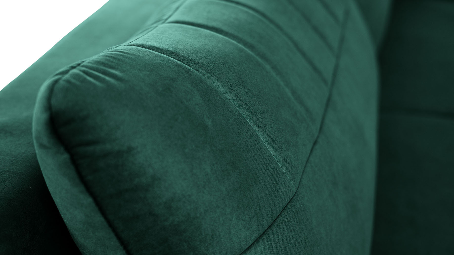 Poduszki kanapy Hela wypełnione są mieszanką 70% wiórów pur i 30% kulek silikonowych, co zapewnia doskonałe wsparcie dla kręgosłupa i przyjemne, miękkie siedzisko. To połączenie sprawia, że kanapa nie tylko prezentuje się stylowo, ale również dostarcza wyjątkowy komfort podczas codziennego użytkowania.