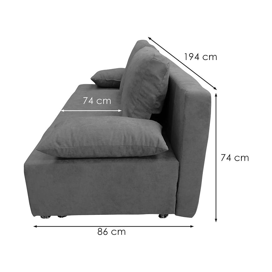 Kanapa Ivo Monolith 84 to połączenie funkcjonalności i wygody. Wymiary 194x86x74 cm, z funkcją spania i powierzchnią 142x194 cm, gwarantują komfort na co dzień. Wyposażona w schowek na pościel, automat do rozkładania DL oraz wypełnienie ze sprężyny bonell i pianki. Tapicerowana w eleganckiej szarej tkaninie, z dopasowanymi szarymi nogami i kompletem poduszek.