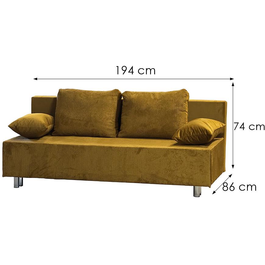 Kanapa Ivo Poso 1/Kronos 1 to stylowa kanapa w musztardowym kolorze, łącząca klasyczny design z funkcjonalnością. Wymiary: szerokość 194 cm, głębokość 86 cm, wysokość 74 cm, głębokość siedziska 74 cm. Wyposażona w funkcję spania o powierzchni 142x194 cm z systemem rozkładania DL oraz schowkiem na pościel. Tapicerka z tkaniny, wypełnienie ze sprężyn bonell i pianki zapewnia wygodę siedzenia i spania. Kanapa posiada chromowane nogi, poduszki w komplecie i automat do rozkładania. Wymaga złożenia. Idealna do klasycznych wnętrz.