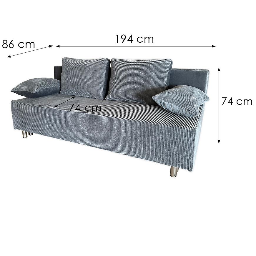 Kanapa Ivo Poso 60/Paros 6 to elegancka i funkcjonalna kanapa w szarym kolorze o klasycznym designie. Wymiary: szerokość 194 cm, głębokość 86 cm, wysokość 74 cm, głębokość siedziska 74 cm. Wyposażona w funkcję spania o powierzchni 142x194 cm z systemem rozkładania DL i schowkiem na pościel. Tapicerka z tkaniny, wypełnienie ze sprężyn bonell i pianki zapewnia wygodę. Kanapa posiada chromowane nogi, poduszki w komplecie i automat do rozkładania. Wymaga złożenia. Idealna do klasycznych wnętrz.
