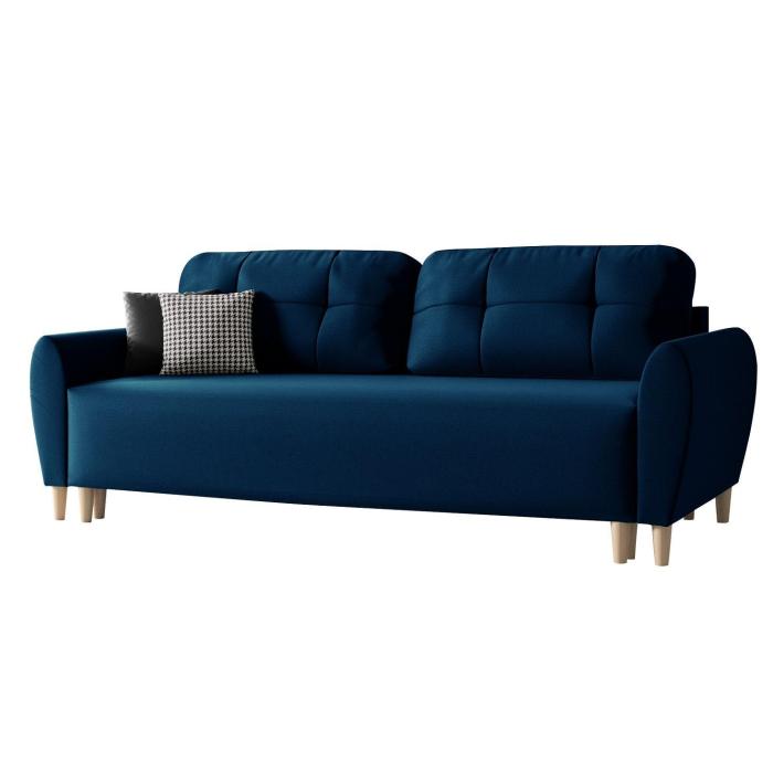Sofa KART z funkcją spania to elegancja, wygoda i funkcjonalność. Sofa rozkładana z powierzchnią spania 136x200 cm zapewni komfortowy sen dla osób, które cenią sobie wypoczynek na kanapie. Na siedzisku zastosowano sprężyny bonell, które zapewnią jeszcze większy komfort podczas wypoczynku i siedzenia przed telewizorem oraz w pełni zadowolą miłośników wielogodzinnych drzemek. Kanapa z pojemnikiem to idealne rozwiązanie, które świetnie sprawdzi się w każdym pomieszczeniu. KART to elegancka sofa, którą możesz ustawić w salonie lub innym pomieszczeniu. Posiada tył obity materiałem, dzięki temu może stać wolno nawet na środku salonu. Drewniane toczone nóżki, miła w dotyku tkanina i interesująco wyprofilowane podłokietniki to główne walory kanapy wykonanej w stylu klasycznym.