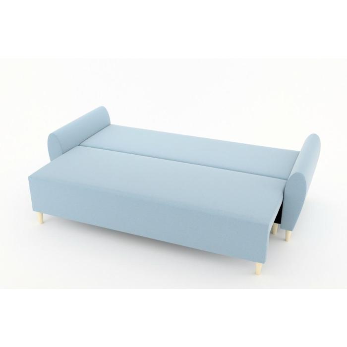 Mechanizm rozkładania jest szybki i prosty - nie potrzeba nic dźwigać. Bez trudnu się podnosi i rozkłada kanapę. Po rozłożeniu powierzchnia spania wynosi 136x200. Kanapa posiada pojemnik na pościel, w którym zmieścimy kołdrę i poduszkę zapewniając porządek w pomieszczeniu.