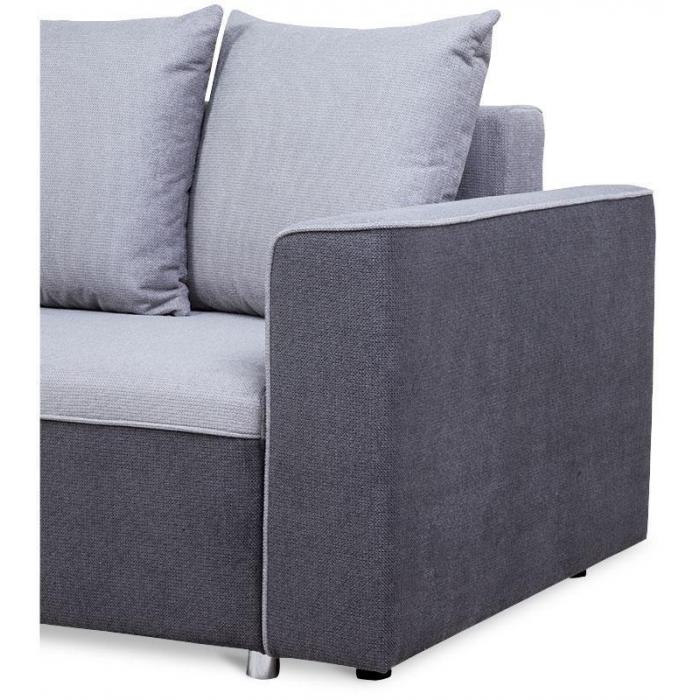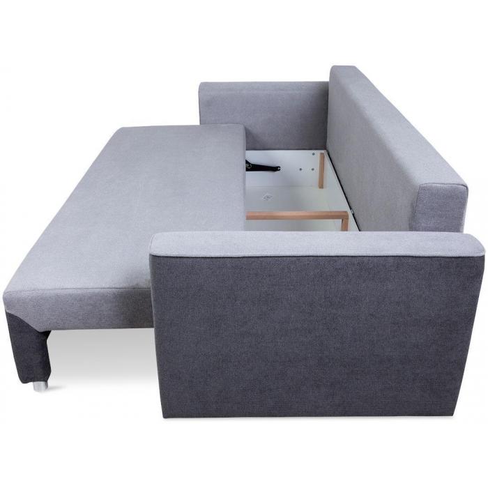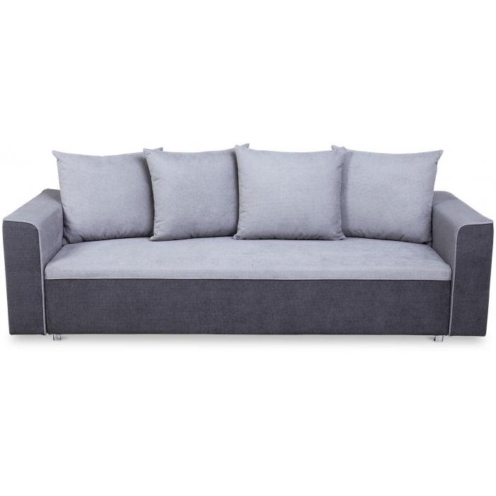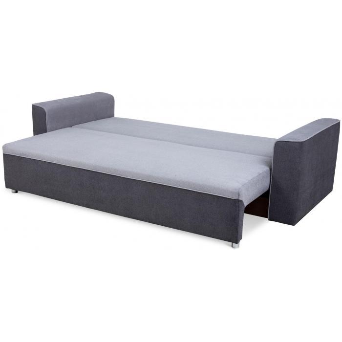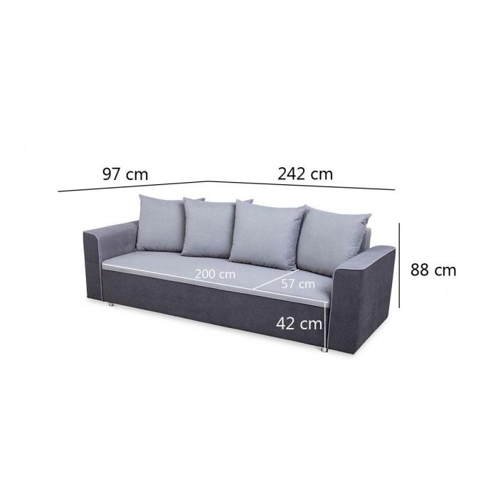 Kanapa Lizbona dostępna w tkaninie Crown - siedzisko i poduszki w kolorze jasny popiel z koordynatem w kolorze ciemny popiel. Na siedzisku sofy zastosowano sprężyny faliste oraz piankę. W oparciu kanapa Lizbona posiada formatkę bonellową. Funkcjonalność kanapy Lizbona zwiększa system rozkładania typu DL, dzięki czemu z wygodnego siedziska dla trzech osób mebel przekształca się w łóżko do spania. Powierzchnia spania o wymiarach 146 x200 cm. Sprężyny faliste wraz z formatką bonellową wpływają na komfort wypoczynku. Znajdujące się w komplecie cztery poduszki nie tylko stanowią oparcie, ale pełnią również rolę elementu dekoracyjnego, nadając wnętrzu przytulnego charakteru. Na czas transportu kanapa pakowana w dwie paczki o wymiarach: 1/2. 77x66x201; 2/2. 61x42x96 cm.