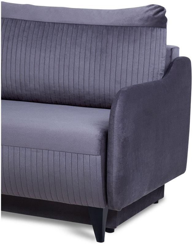 Obicie tkaniny stanowi przyjemna w dotyku tkanina. Uniwersalny kolor obicia to świetna baza pod względem wizualnym pod dalszą aranżację. Dodatkowym elementem dekoracyjnym są częściowe przeszycia materiału obicia kanapy. Estetyczne wykończenie, dbałość o detale to wszystko składa się na jakość wykonania.