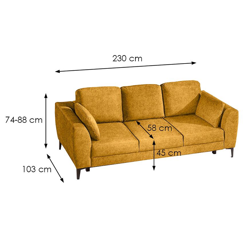 Kanapa Marino w odcieniu musztardowym to wyjątkowy mebel, który nie tylko przyciąga uwagę swoim kolorystycznym urokiem, ale także łączy w sobie nowoczesny design z praktycznymi funkcjonalnościami.