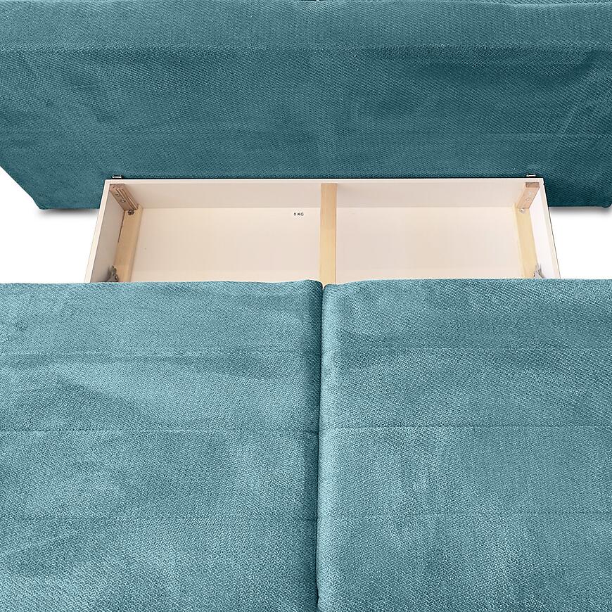 Wbudowany pojemnik na pościel to dodatkowy atut, szczególnie ceniony w mniejszych mieszkaniach. Jeden duży schowek pozwala wygodnie przechować kołdry, koce lub dodatkowe poduszki.