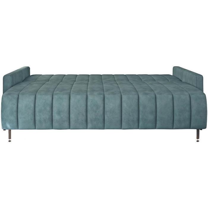 Powierzchnia spania po rozłożeniu wynosi 140x200 cm. Wypełnienie siedziska stanowią sprężyny faliste, które dzięki swoim właściwościom zapewniają wysoki poziom relaksu. Udogodnieniem z pewnością będzie także dodatkowy pojemnik na pościel, który pomoże odpowiednio zagospodarować przestrzeń. To dobre rozwiązanie do małego mieszkania.