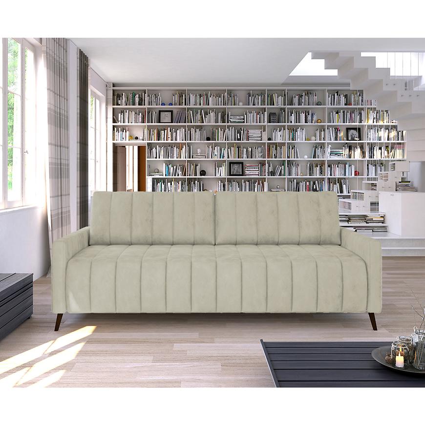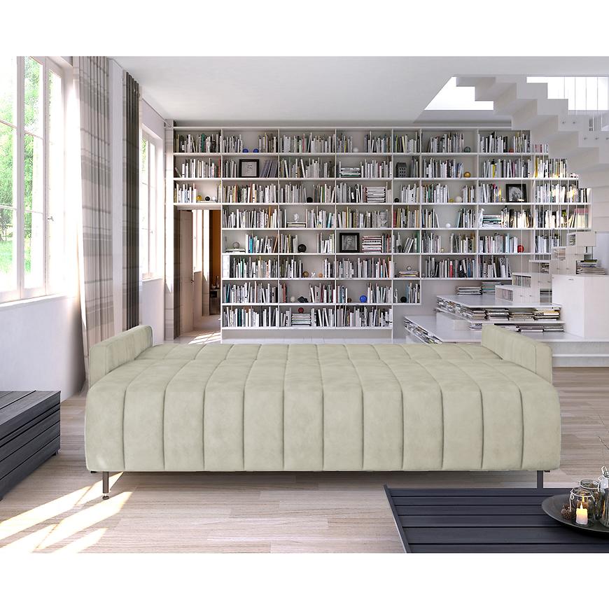 Kanapa wyposażona jest w funkcję spania, co czyni ją rozwiązaniem do okazjonalnego spania. Po rozłożeniu to miejsce do spania o wymiarach 140x200 cm, a system rozkładania typu DL sprawia, że przekształcenie jest szybkie i intuicyjne. Dodatkowo, kanapa posiada schowek na pościel, co pozwala na wygodne przechowywanie kołder, poduszek i innych akcesoriów sypialnianych. Jeden pojemnik na pościel umieszczony pod siedziskiem zapewnia dodatkową funkcjonalność, pomagając utrzymać porządek w pomieszczeniu.