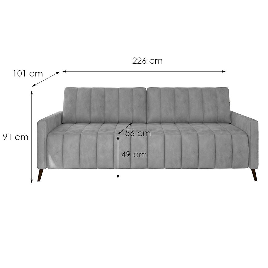 Kanapa wyposażona jest w funkcję spania, co czyni ją rozwiązaniem do okazjonalnego spania. Po rozłożeniu to miejsce do spania o wymiarach 140x200 cm, a system rozkładania typu DL sprawia, że przekształcenie jest szybkie i intuicyjne. Dodatkowo, kanapa posiada schowek na pościel, co pozwala na wygodne przechowywanie kołder, poduszek i innych akcesoriów sypialnianych. Jeden pojemnik na pościel umieszczony pod siedziskiem zapewnia dodatkową funkcjonalność, pomagając utrzymać porządek w pomieszczeniu.