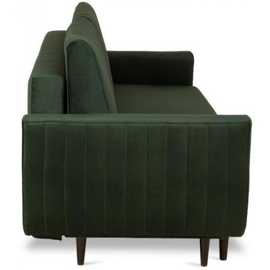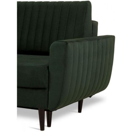 Elegancka sofa Monet pod względem wizualnym to świetna propozycja do wnętrz w nowoczesnym stylu. Tapicerkę wykonano z przyjemnej w dotyku tkaniny. Jako element dekoracyjny zastosowano przeszycia oraz wysokie czarne nóżki wykonane z drewna, które jednocześnie podtrzymują całą konstrukcję kanapy. Kanapa Monet będzie idealnym wyborem dla miłośników minimalistycznych form i eleganckiej prostoty.