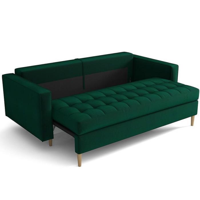 Kanapa oferuje sporą, przede wszystkim wygodną powierzchnię do spania okazjonalnego o wymiarze 141x198cm. Dodatkowo posiada pojemnik na pościel. Komfort codziennego użytkowania zapewniają sprężyny faliste oraz pianka HR. Zastosowany automat typu DL ułatwia rozkładanie. Kompaktowe wymiary pozwolą stworzyć wygodną przestrzeń do relaksu w zależności od indywidualnych potrzeb nawet małego mieszkania.