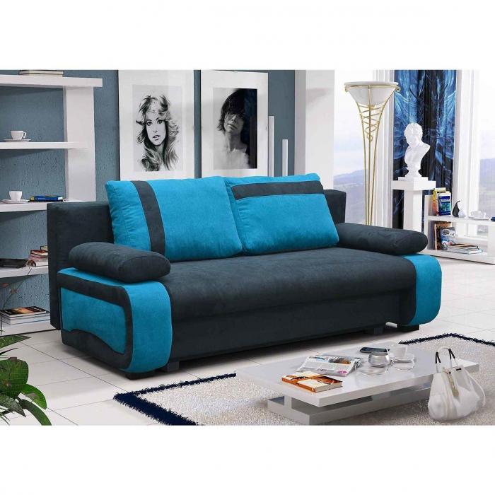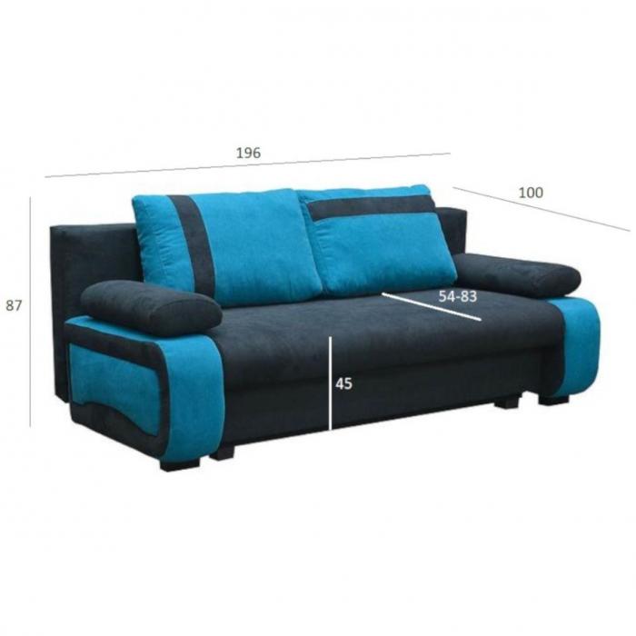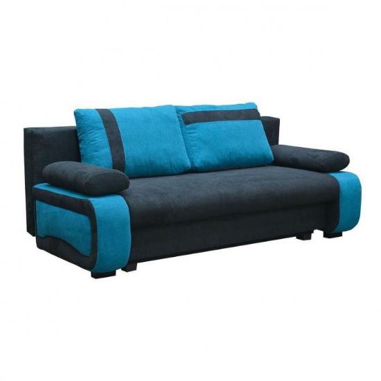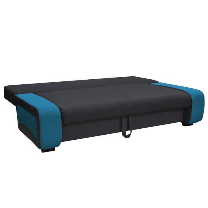 Nowoczesna, stylowa i elegancka Kanapa Nemo zaprojektowana z dbałością o najmniejszy detal to propozycja dla miłośników zarówno oryginalnego wystroju wnętrz, ale także klasycznej, prostej meblowej kompozycji. Kanapa może pełnić funkcję nie tylko wygodnej sofy, ale także być alternatywą sypialnianego łóżka. Powierzchnia spania po rozłożeniu wynosi 142x196 cm. Sofa posiada także jeden schowek do przechowywania np. pościeli, co jest bardzo funkcjonalnym rozwiązaniem. Wypełnienie siedziska stanowi sprężyna bonell, która zwiększa komfort podczas codziennego wypoczynku zarówno w dzień jak i w nocy. Kanapa świetnie sprawdzi się w takich pomieszczeniach jak salon czy pokój nastolatka. Jako element ozdobny zastosowano połączenie tkanin w dwóch kontrastowych kolorach, które umieszczono zarówno na kanapie jak i elementach poduszek. Elementem dekoracyjnym, a jednocześnie podtrzymującym konstrukcję kanapy są drewniane nóżki. Dodatkowym udogodnieniem są podłokietniki wykonane z miękkiej jak w przypadku poduszek tkaniny. Dzięki temu, że można je zdemontować powierzchnia użytkowa kanapy zwiększa się.