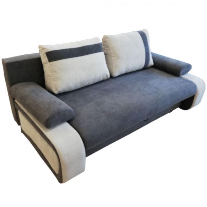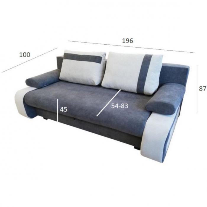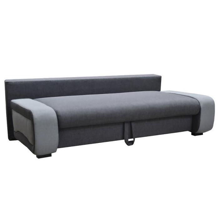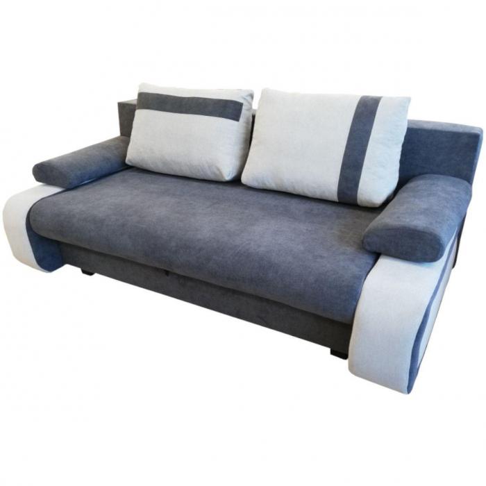 Nowoczesna, stylowa i elegancka Kanapa Nemo zaprojektowana z dbałością o najmniejszy detal to propozycja dla miłośników zarówno oryginalnego wystroju wnętrz, ale także klasycznej, prostej meblowej kompozycji. Kanapa może pełnić funkcję nie tylko wygodnej sofy, ale także być alternatywą sypialnianego łóżka. Powierzchnia spania po rozłożeniu wynosi 142x196 cm. Sofa posiada także jeden schowek do przechowywania np. pościeli, co jest bardzo funkcjonalnym rozwiązaniem. Wypełnienie siedziska stanowi sprężyna bonell, która zwiększa komfort podczas codziennego wypoczynku zarówno w dzień jak i w nocy. Kanapa świetnie sprawdzi się w takich pomieszczeniach jak salon czy pokój nastolatka. Jako element ozdobny zastosowano połączenie tkanin w dwóch kontrastowych kolorach, które umieszczono zarówno na kanapie jak i elementach poduszek. Elementem dekoracyjnym, a jednocześnie podtrzymującym konstrukcję kanapy są drewniane nóżki. Dodatkowym udogodnieniem są podłokietniki wykonane z miękkiej jak w przypadku poduszek tkaniny. Dzięki temu, że można je zdemontować powierzchnia użytkowa kanapy zwiększa się.